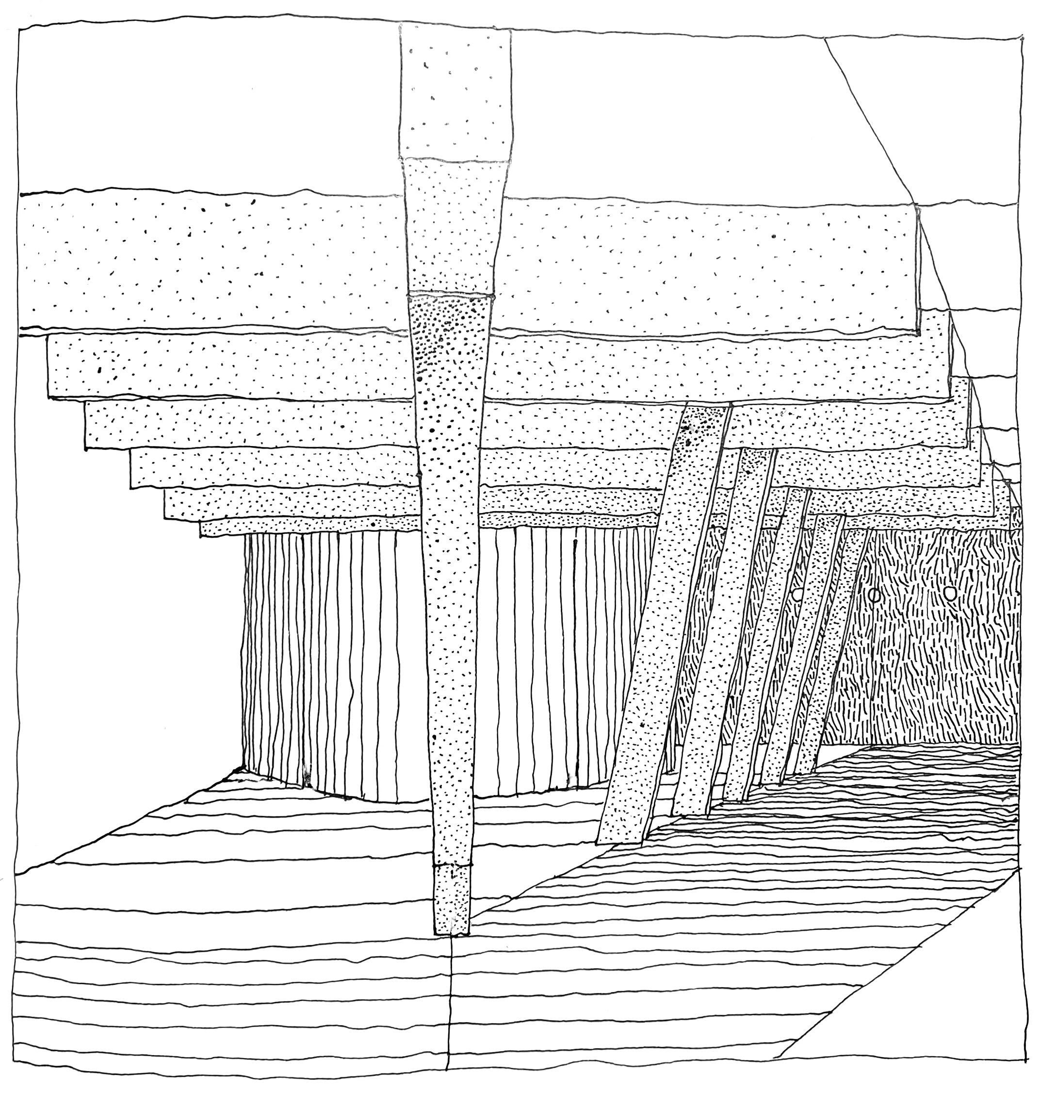 Cette réhabilitation repousse les limites de la structure actuelle, apathique et encombrante. Une exo-structure est greffée à la première pour soulever le bâtiment et décupler ses capacités de portée. L’ossature est redressée afin d’ouvrir et dilater les espaces. Ainsi l’intérieur s’affranchi de la géométrie de la parcelle et son organisation est repensée afin de prolonger les usages et les appropriations.