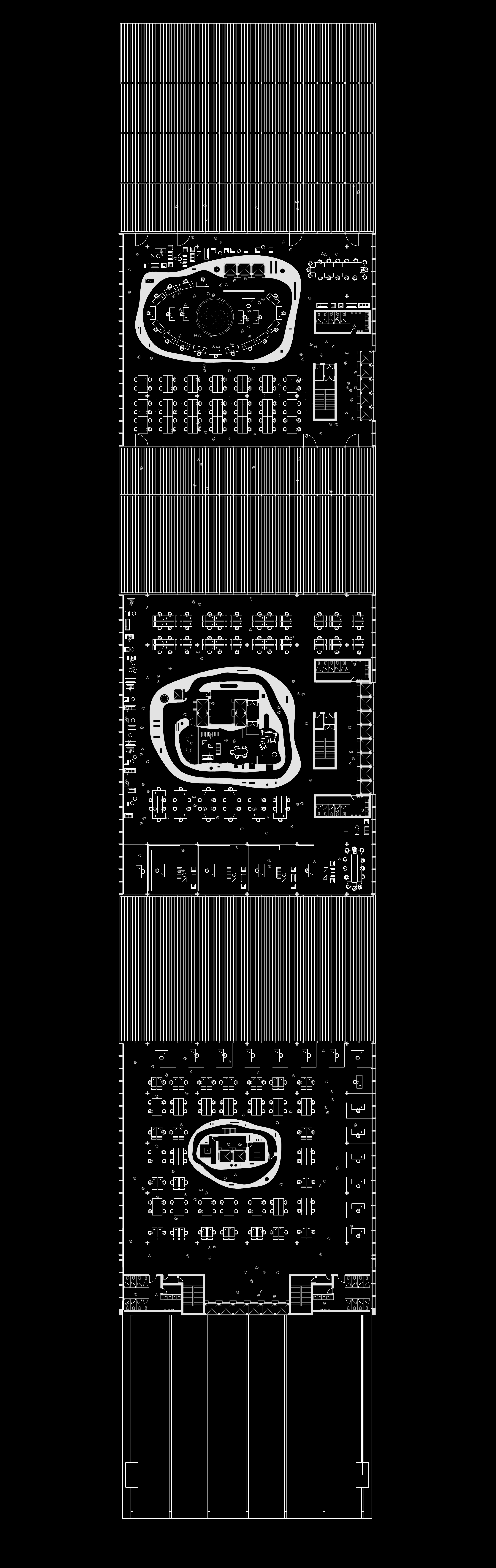 Autour de ce noyau: des open spaces qui ouvrent sur la ville et le fleuve. C’est l’espace intermédiaire entre l’extérieur et ce « bunker ». Si le volume intérieur est labyrinthiques, architecturalement riche et pluriel, cet espace le bordant est quant à lui, fonctionnel, générique et standardisé. Pour finir c’est un lieu de la représentation, qui se donne à voire grâce à sa façade de verre et laisse paraître une certaine transparence dans les activités qui s’y déroulent à l’intérieur.